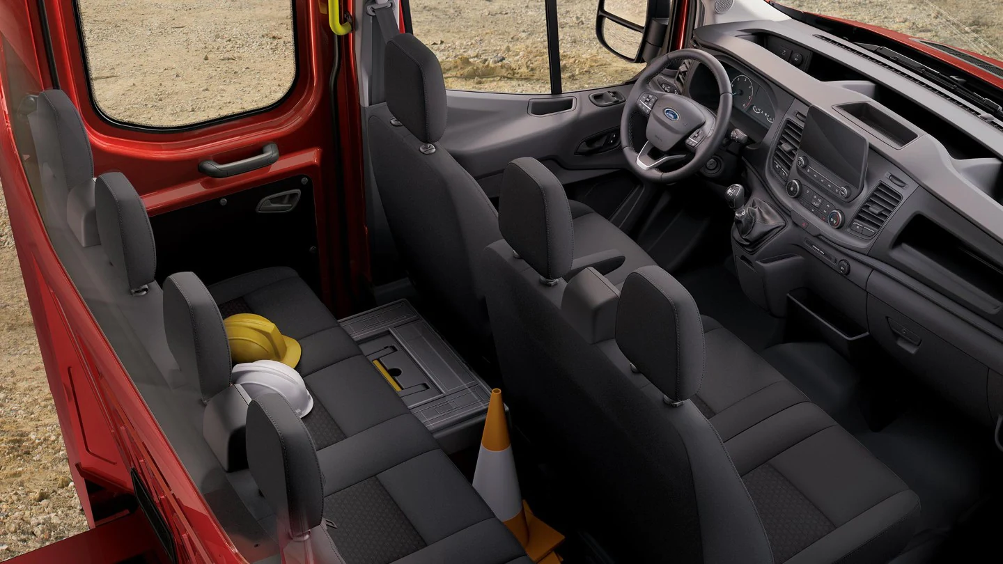 Available in long to extra-long wheelbases, and built with a robust ladder-frame chassis the Transit Chassis Double Cab provides a flat, strong base on which to build your perfect crew van conversion. And with a new 5-Tonne model available, you have a flat, strong base on which to build your perfect vehicle, however you like, with up to 2,960 kg of payload on the chassis cab range and still have room for up to six passengers.